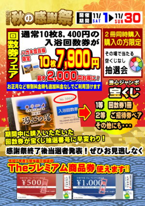 いつも游心の湯をご利用いただき誠にありがとうございます。