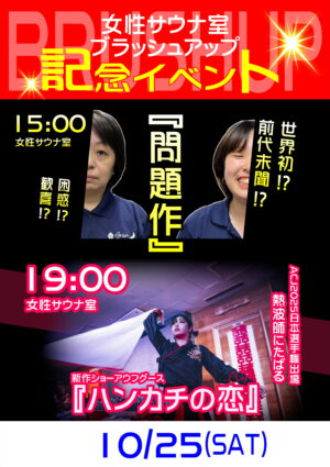 どちらも女性サウナ室内で行うスペシャルアウフグースです。ぜひお越しください。